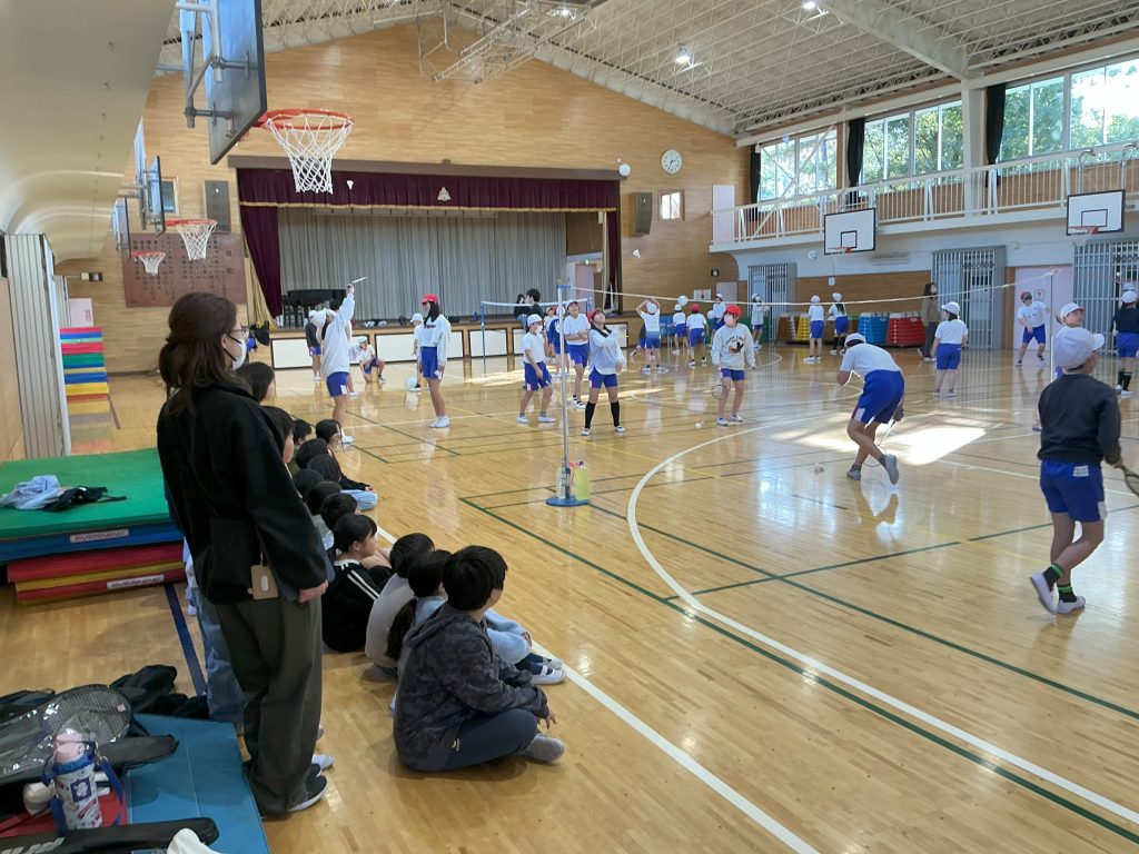 クラスごとに、運動系のクラブとそうでないクラブに分かれて見学しました。写真は体育館の様子です。バドミントン・バレーボール・卓球クラブが活動しています。