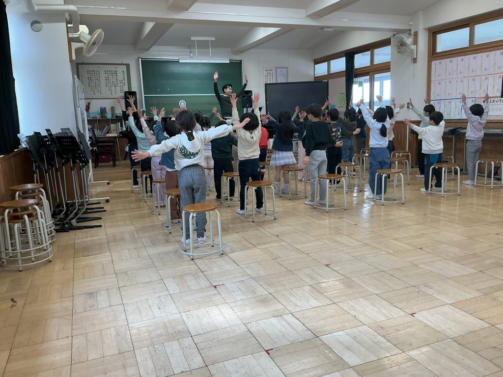 1年生、音楽の授業の様子です。来週の音楽集会に向け、音楽劇『くじらぐも』の練習をしています。役割分担をして個人のセリフを言ったり、みんなで合唱したりします。身振り手振りを交え、1年生の魅力いっぱいに仕上がりつつあります。今日は、歌詞の様子を思い浮かべて歌うため、みんなで色々とアイデアを出し合っていました。