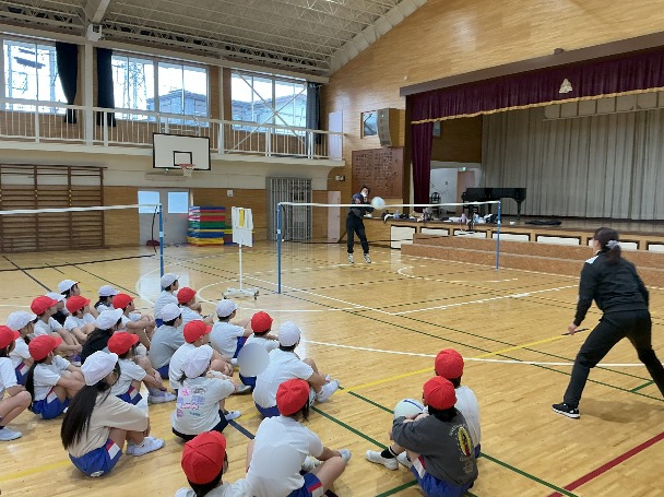 今日は3学期初めての、宗岡第二中学校の体育科教員による乗り入れ授業の日でした。小学校の教員は、全教科を指導する必要があるので、中学校教員の専門性にはかなわないものです。今日はアタックの方法について、ご指導いただき、模範演技をしてもらいました。