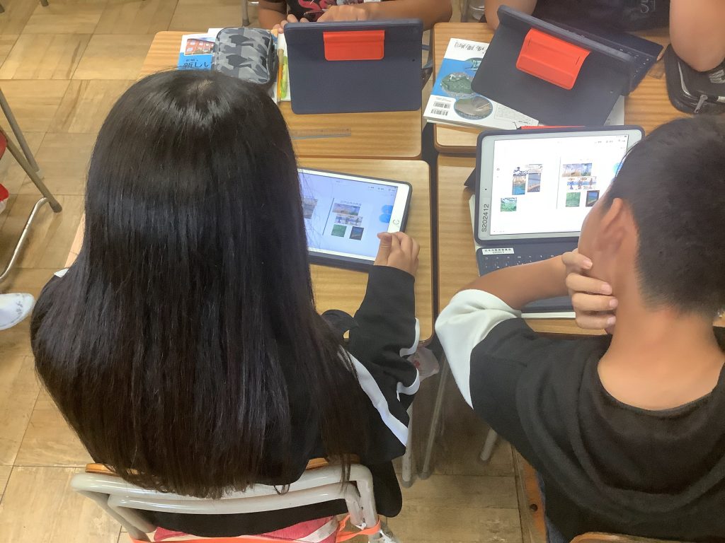 浮世絵については、「江戸」で作成されたものと、「江戸」以下の場所で作成されたものについて、クラスクラウドで分けています。日本の浮世絵は海外でも高く評価されていたので、表現方法を取り入れたものの存在について、みんなで考え、知ることができました。印刷により、大量に生産できるようになったことに気づき、自分たちが図工で学習した木版画について思い出している子もいました。