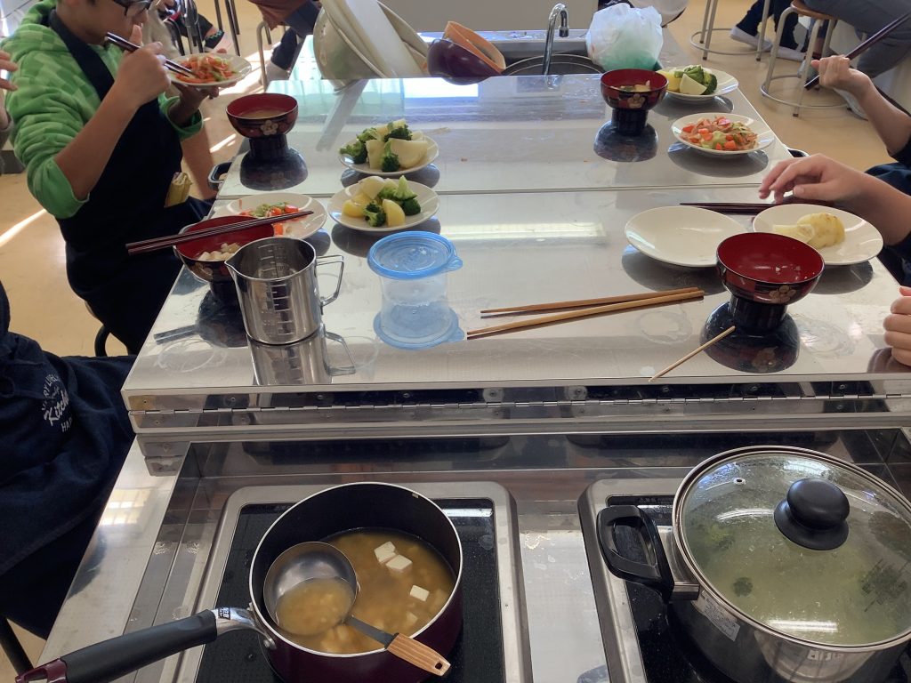 できあがったおかずなどを一緒に作った友達と食べるのは、家庭科の授業の醍醐味です。保護者の皆様も調理実習の思い出がある方もいらっしゃることと思います。事前に知識を学び、考えたことをもとに作ったおかずの味は、ひとしおであると思います。