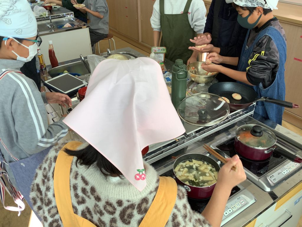 今日は調理実習とし、計画を実行にうつしています。事前の計画をもとに材料を準備して、グループの友達と協力して、楽しそうに調理していました。