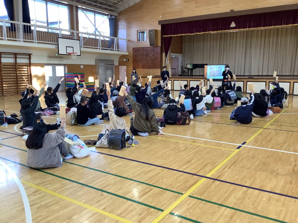 6時間目終了後の体育館の様子です。通学班長会議を行いました。新旧の通学班長の保護者様へのお手紙配付のお願いをし、引き続き、事故ゼロの継続の依頼を担当から伝え、班長たちの日々の取組を労いました。
