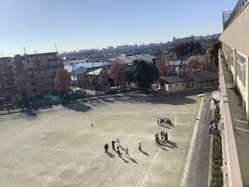 同じ時間帯の校庭の様子です。2年生同様5年生が、学級活動の授業で外に出ています。