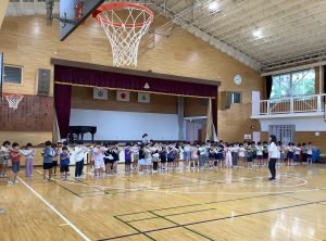 昼休みの時間帯に、音楽集会を行いました。今日は2年生の発表でした。 鍵盤ハーモニカによる合奏「教科書メドレー」として、「かえるの合唱」「かっこう」などを演奏しました。ピアノの音色に合わせ、今までの学習の成果を発揮すること […]