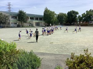 6年生、体育の授業の様子です。「体ほぐしの運動」に取り組んでいます。先週までは、熱中症指数の関係で、体育館で体育をする学級が多かったのですが、今日くらいの陽気であるとグラウンドでも十分に活動が可能です。子供たちは、ペアで […]