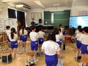 3年生、音楽の授業の様子です。「雨上がり」という曲にリコーダーでチャレンジしています。この曲は、左手の指だけで弾くことができます。3年生から始まったリコーダーの演奏、少しずつ回数を重ね、慣れてきている3年生です。弾く姿勢 […]