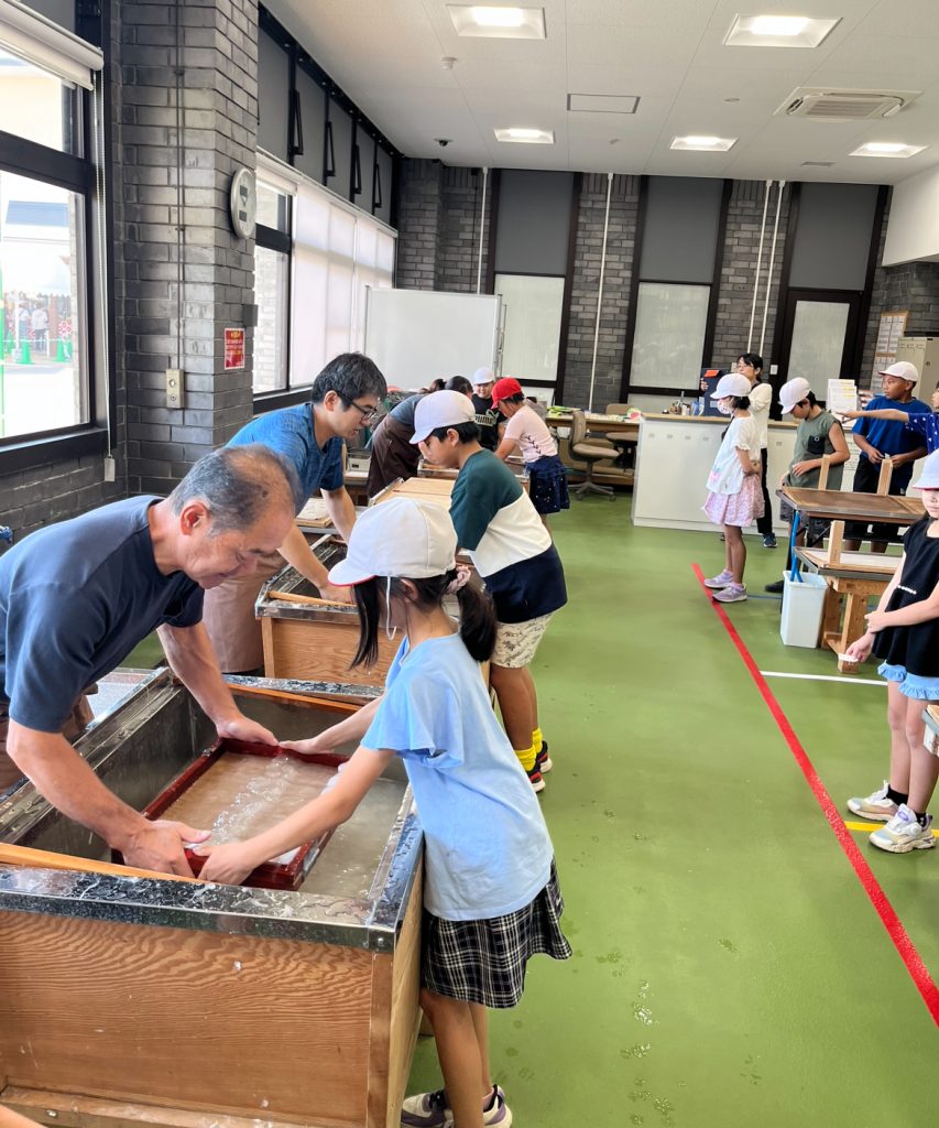 本日、4年生の社会科見学を実施しました。午前中は、道の駅おがわまちでの紙漉き体験を行いました。原料の感触や、用具の扱いに難しさを感じながら、初めての体験に目を輝かせていました。午後は、小江戸 川越での蔵造りの町並み・菓子屋横丁散策・買い物体験をしながら、伝統文化に触れることができました。また、事前に調べ学習した知識を見学場所で発表することで、互いに理解を深めていました。