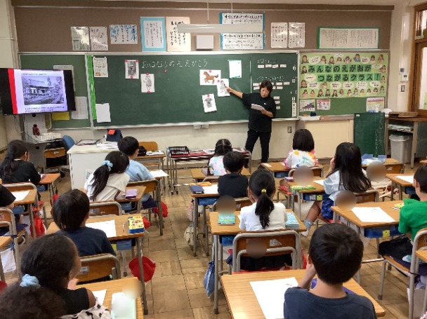 子供たちは担任の話に耳を傾け、それぞれが想像を膨らませていました。2学期が始まり約1週間。1年生はみんな元気に学校生活を送っています。