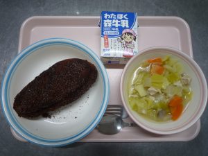 【今日の献立】 ココアあげパン・キャベツたっぷりスープ・ぎゅうにゅう 【ひとこと】 今日は、6年2組8班が、家庭科の授業で考えた献立です。アピールポイントは、「みんな大好きココアあげパン!食べやすいメニューを心がけまし […]