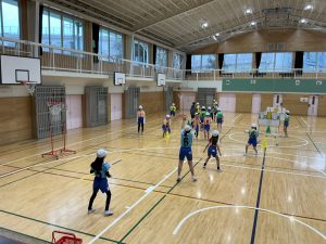 2年生、体育の授業の様子です。『ボンバーゲーム』に取り組んでいます。大きなビニル袋の中に、新聞紙を詰めたものを「ボンバー!」と呼んでいました。バドミントンコートを使用します。ゴムの上を通し、相手コートに落とせたら1点がカ […]