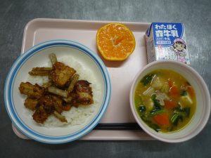 【今日の献立】 ごはん・チキンチキンごぼう・ちゅうかもやし・たまごスープ・ぎゅうにゅう 【ひとこと】 1月24日~30日は『全国学校給食週間』です。みなさんに給食のことを改めて考えてもらえるよう、今週は日本の郷土料理や […]