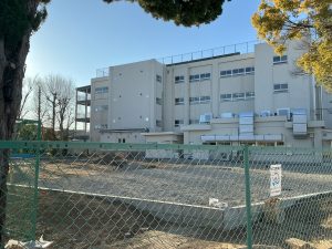昨日、学校北側の道路に沿った所を中心に設置されていた仮囲いが、およそ半年ぶりに撤去されました。給食室大規模改修・プール解体の全貌がお目見えしました。あと1か月ですべての工事等を終える予定です。 プールがあった場所には、駐 […]